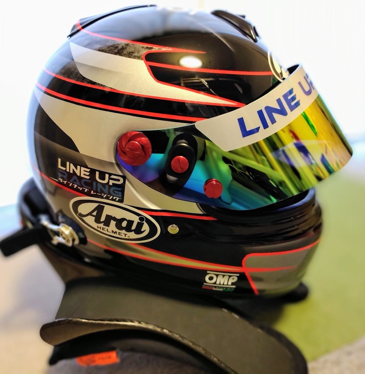 LINE UPのロゴをヘルメットバイザーに。 アライ4輪用GP5/GP6バイザー用。 写真は取り付けイメージです。